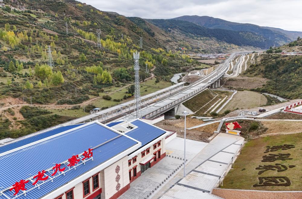 一列动车驶入川青铁路黄龙九寨站。新华社记者 王曦 摄