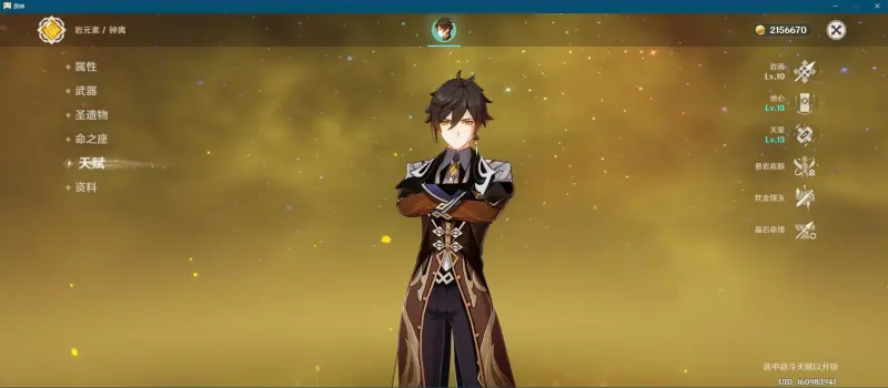 以精1赤沙钟离为基准,测试角色面板如图所示: