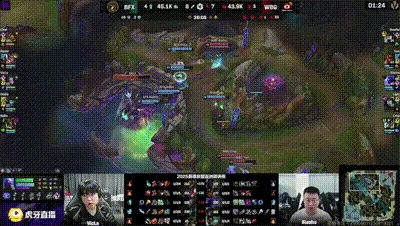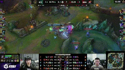 比赛第9分钟,WBG强行越塔被BFX一波打出1换4,BFX扭转前期劣势。
