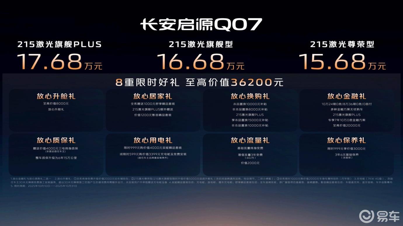 定价权益普惠获信长安启源Q07天枢智能激光版的市场策略,核心在于『技术普惠』与『用户信任构建』。从定价来看,15.68万元-17.68万元的区间,将激光雷达、128TOPS芯片等高端配置纳入主流消费能力范围,对比同级别无激光雷达的竞品,价格优势明显。