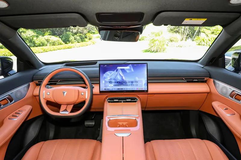 内饰方面,新车中控台采用游艇式环抱设计,搭载15.6英寸悬浮式中控屏、12.3英寸副驾智慧屏、55英寸AR-HUD全息式增强现实系统、50W车载无线手机充电等配置。