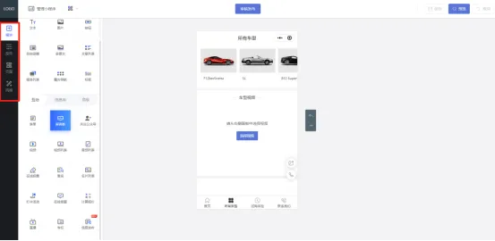 进入设计小程序页面后,找到【设计小程序】模块,点击【更换模板】,挑选适合汽车行业的小程序模板进行套用。接着进入编辑制作页面,你可以点击左边的【模块】选项,随心添加表单、留言板、视频、名片列表、专栏等功能模块到小程序页面中。