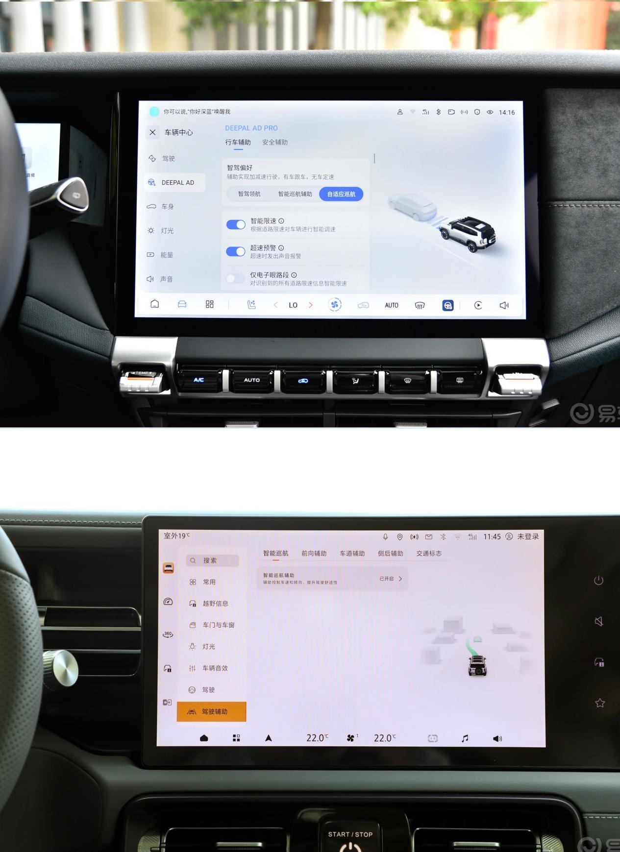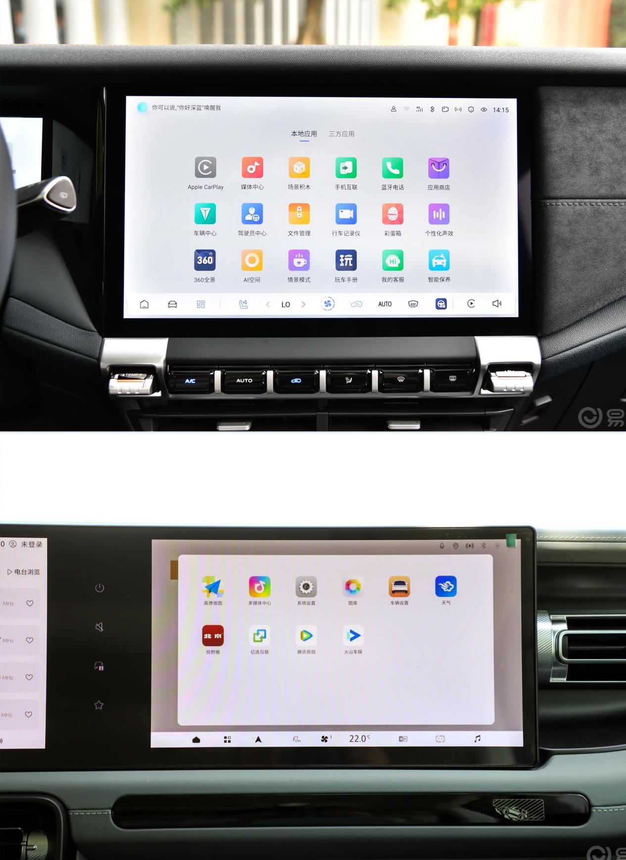 车机配置方面,深蓝G318无忧穿越版搭载了14.6英寸的液晶触控屏,不但比BJ40的12.8英寸要更大,而且深蓝G318无忧穿越版屏幕的分辨率还达到了1920x1080,而且还带有低蓝光莱茵认证的显示增强功能,可满足32-55级蓝光过滤,15级色温调节,所以显示效果要更细腻、清晰。两车的智能车机系统都拥有很不错的实用性和娱乐性,像蓝牙、手机互联、语音控制以及车联网这些功能都支持,但是深蓝G318无忧穿越版搭载的Deepal OS系统还多了一些更先进、更酷炫的功能,而且还深度融合了DeepSeek语音AI加持,支持四音区、可见即可说、连续识别等功能,而BJ40的语音识别只支持双音区,功能性上要比BJ40的车机系统更高阶。