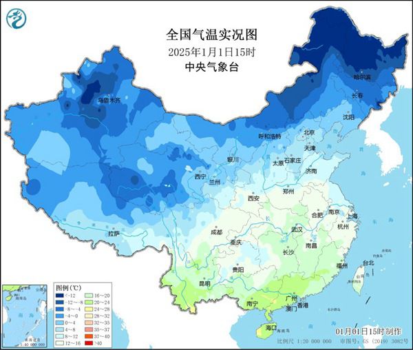 1月1日至3日,将有一股有弱冷空气影响中东部地区,以大风降温为主,无明显雨雪天气。内蒙古中东部、东北地区等地部分地区有4级左右、阵风6~7级的偏北风,局地阵风8级;气温下降4~6℃,内蒙古东北部、黑龙江局地等地降温8℃左右,南方地区降温2~4℃。