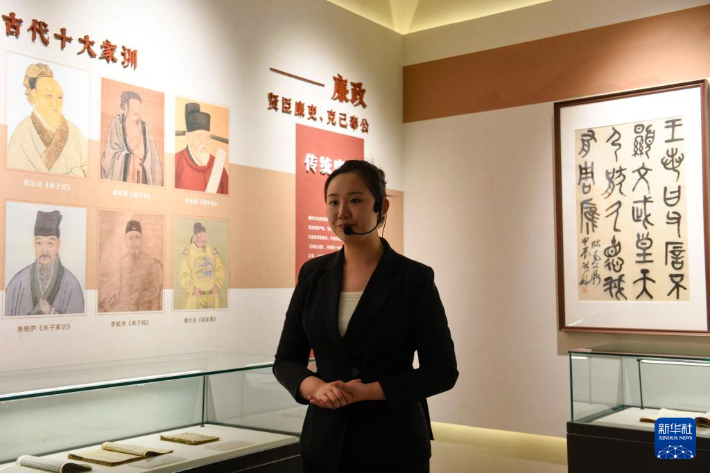 3月25日,讲解员在“廉心雅苑”内为参观者讲解。